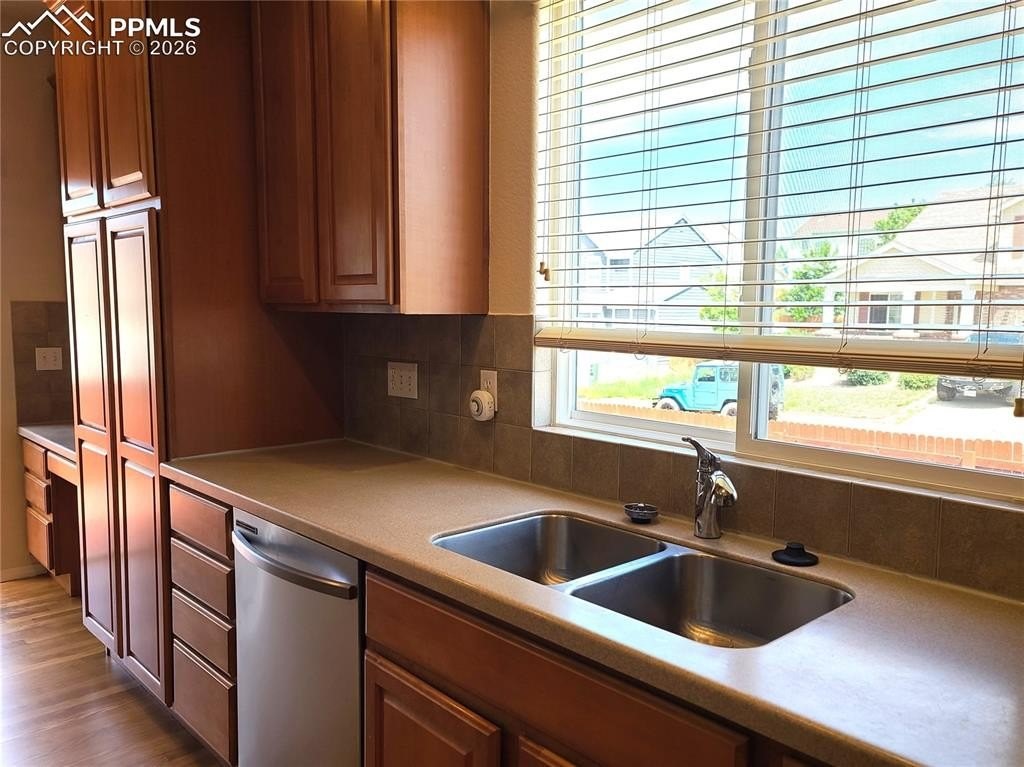 Discover this stunning 6-bedroom ranch-style residence, perfectly positioned on a desirable corner lot with views of the Front Range! Step inside to an inviting main level that blends elegance and everyday comfort. Entertain effortlessly in the formal living and dining rooms, or gather around the cozy gas-burning fireplace in the expansive family room. The heart of the home is the large kitchen, boasting a central island, stainless steel appliances, abundant cabinetry, a convenient pantry, and an eating nook that flows seamlessly out to the deck. The main-level primary suite is a true retreat, featuring a 5-piece bathroom and a generous walk-in closet. Two additional bedrooms grace the main floor, including one with French doors that doubles beautifully as a home office. A well-appointed hallway bathroom and laundry area (bring your own washer & dryer) complete this level for easy living. Head downstairs to a fully finished basement offering endless possibilities: a spacious second family room perfect for movie nights or game days, three more comfortable bedrooms, another full hallway bathroom, plus ample storage and a utility room. Nestled in a prime location, you're just minutes from shopping, restaurants, and everyday conveniences, with quick access to the Air Force Academy, I-25, and Denver. Whether you're seeking space for a growing family, multigenerational living, or simply room to breathe, this beautiful ranch home delivers it all!